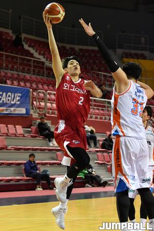 [점프볼=수원/홍기웅 기자] 11일 경희대학교 국제캠퍼스 선승관에서 열린 '2018-2019 KBL D-리그 2차 대회' 오리온과 전자랜드의 경기. 전자랜드 박성진이 낮은 자세로 드리블 돌파를 하고 있다.