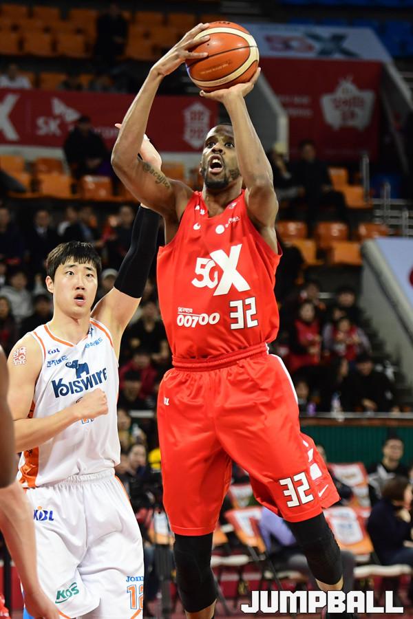 [점프볼=잠실학생/박상혁 기자] 12일 잠실학생체육관에서 2018-2019 SKT 5GX 프로농구 정규리그 서울 SK와 인천 전자랜드의 경기가 열렸다. SK 헤인즈가 점프슛을 던지고 있다.