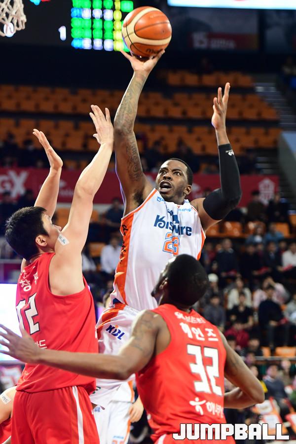 [점프볼=잠실학생/박상혁 기자] 12일 잠실학생체육관에서 2018-2019 SKT 5GX 프로농구 정규리그 서울 SK와 인천 전자랜드의 경기가 열렸다. 전자랜드 로드가 골밑에서 훅슛을 던지고 있다.