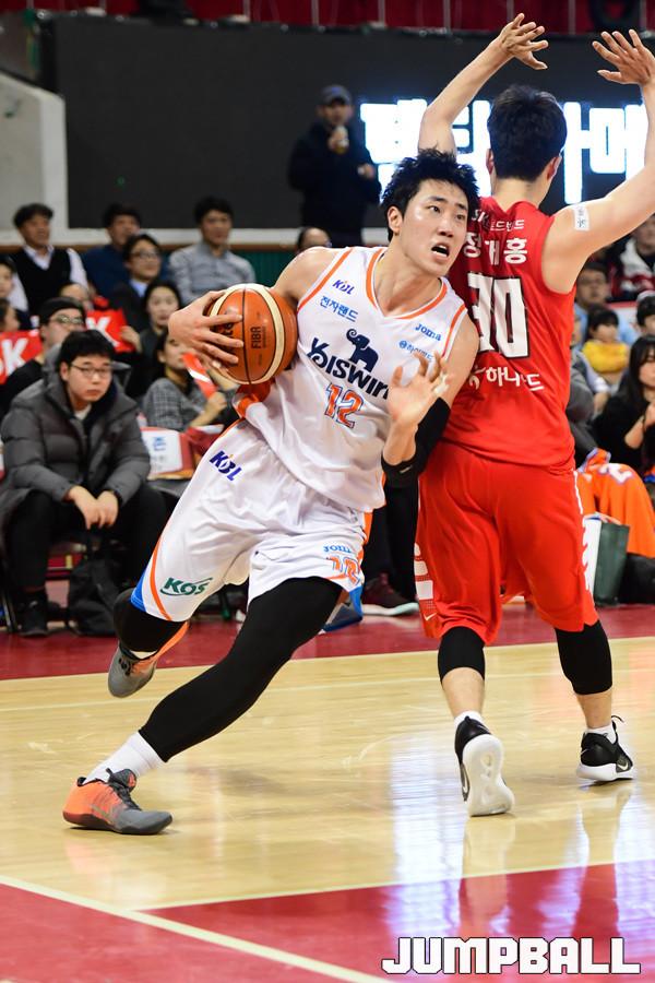 [점프볼=잠실학생/박상혁 기자] 12일 잠실학생체육관에서 2018-2019 SKT 5GX 프로농구 정규리그 서울 SK와 인천 전자랜드의 경기가 열렸다. 전자랜드 정효근이 돌파를 시도하고있다.