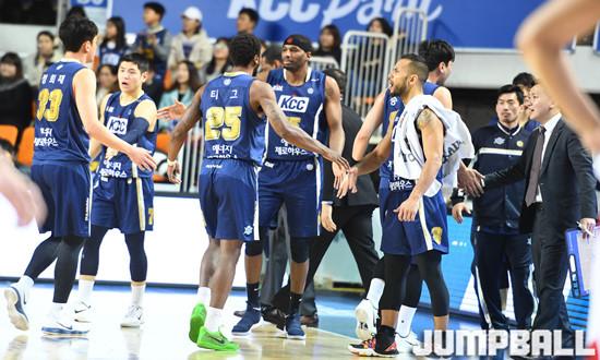 [점프볼=전주/문복주 기자] 14전주실내체육관에서 열린 '2018-2019 SKT 5GX 프로농구' 전주 KCC와 고양 오리온의 경기, KCC가 전반 경기를 리드하면서 환호하고 있다.