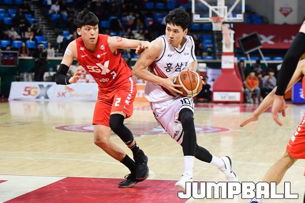 [점프볼=잠실학생/박상혁 기자] 15일 잠실학생체육관에서 2018-2019 SKT 5GX 프로농구 정규리그 서울 SK와 안양 KGC인삼공사의 경기가 열렸다. KGC인삼공사 문성곤이 돌파를 시도하고있다.