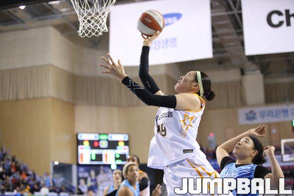 [JB포토] 경기를 더할수록 성장하는 박지수의 골밑 공격