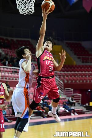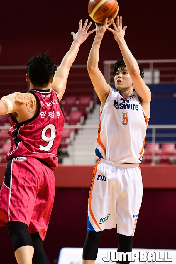 [점프볼=수원/박상혁 기자] 18일 경희대학교 국제캠퍼스 선승관에서 '2018-2019 KBL D-리그 2차 대회' 창원 LG와 인천 전자랜드의 경기가 열렸다. 전자랜드 전현우가 수비수를 앞에두고 자신있게 슛을 던지고 있다.