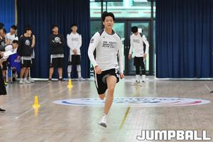[점프볼=양구/홍기웅 기자] 22일 강원 양구 청춘체육관에서 열린 2019 KBL 유스 엘리트 캠프 고등부 스킬트레이닝이 열렸다. 양정고 이승호가 잽스텝 연습을 하고 있다.