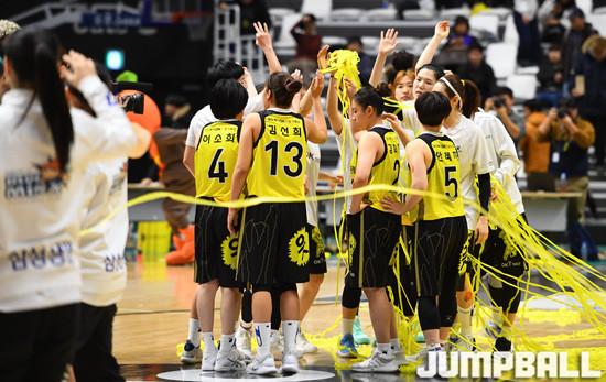 [점프볼=서수원/문복주 기자] OK저축은행이 22일 서수원칠보체육관에서 열린 우리은행 2018-2019 여자프로농구 용인 삼성생명과의 정규리그 마지막 맞대결에서 84-69로 승리했다.