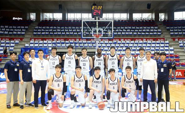 22일(이하 한국시간) 레바논 스타드 노하우드 나우팔 체육관에서 열린 2019 국제농구연맹(FIBA) 농구월드컵 아시아예선 경기에 앞서 단체 촬영을 하고 있다.