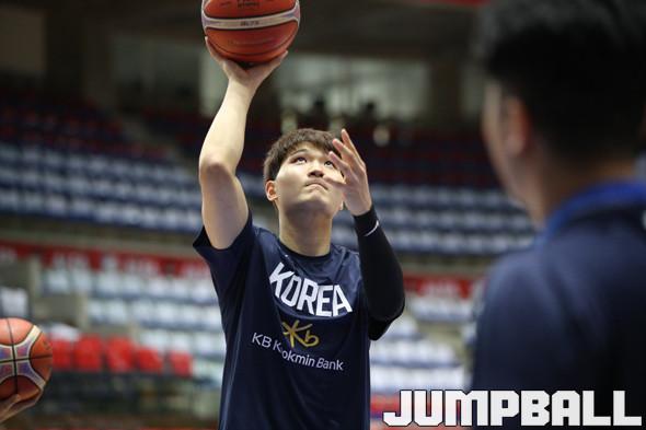 22일(이하 한국시간) 레바논 스타드 노하우드 나우팔 체육관에서 열린 2019 국제농구연맹(FIBA) 농구월드컵 아시아예선 경기에 앞서 안영준이 가벼운 몸놀림으로 경기를 준비하고 있다.