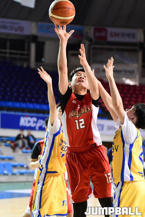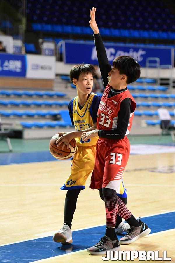 [점프볼=전주/박상혁 기자] 23일 전주실내체육관에서 2018-2019 KBL 유소년 주말리그 삼성과 SK의 초등부 고학년 경기가 열렸다. 19대 12로 SK 초등부 고학년이 삼성 초등부 고학년에게 승리하였다. 삼성 초등부 고학년과 SK 초등부 고학년간의 경기 화보.