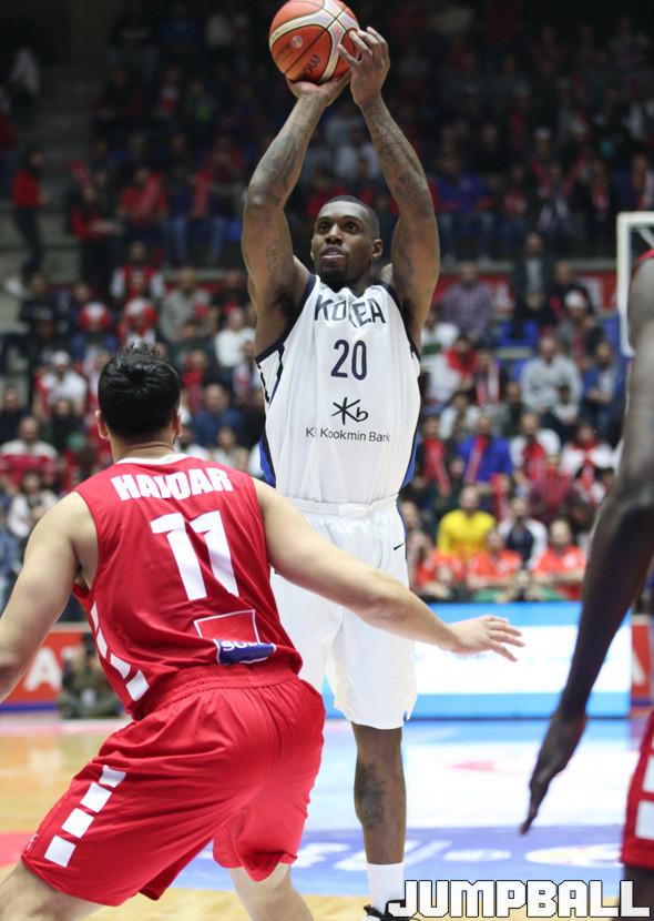 24일(한국시간) 레바논 스타드 노하우드 나우팔 체육관에서 2019 국제농구연맹(FIBA) 중국농구월드컵 아시아-오세아니아 예선 레바논과의 마지막 예선 경기. 한국 대표팀의 라건아가 상대의 집중 수비를 피해 오픈 찬스에서 슛을 시도하고 있다.