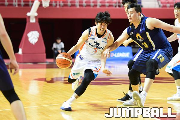 [점프볼=수원/박상혁 기자] 26일 경희대학교 국제캠퍼스 선승관에서 '2018-2019 KBL D-리그 2차 대회' 전주 KCC와 인천 전자랜드의 준결승전이 열렸다. 전자랜드의 정병국이 계속해서 공격을 시도하고 있다.
