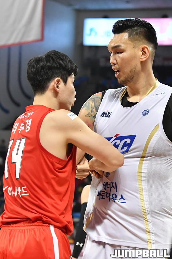 [JB포토] SK 최부경, KCC 하승진 '신경전'