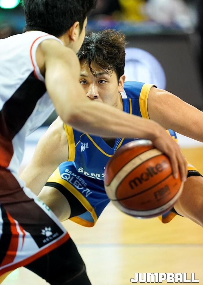 [점프볼=잠실/유용우 기자] 2일 잠실실내체육관에서 열린 '2018-2019 SKT 5GX 프로농구' 서울 삼성과 부산 kt의 경기, 삼성 김태술이 수비를 펼치고 있다.