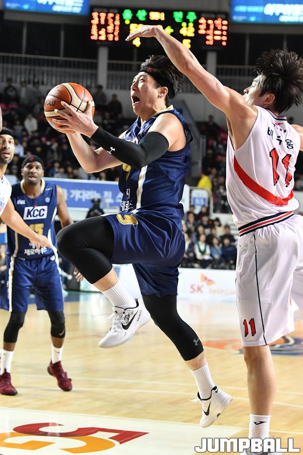 [점프볼=전주/홍기웅 기자] 3일 전주실내체육관에서 열린 '2018-2019 SKT 5GX 프로농구' 전주 KCC와 울산 현대모비스의 경기. KCC 이정현이 골밑슛을 시도하고 있다.