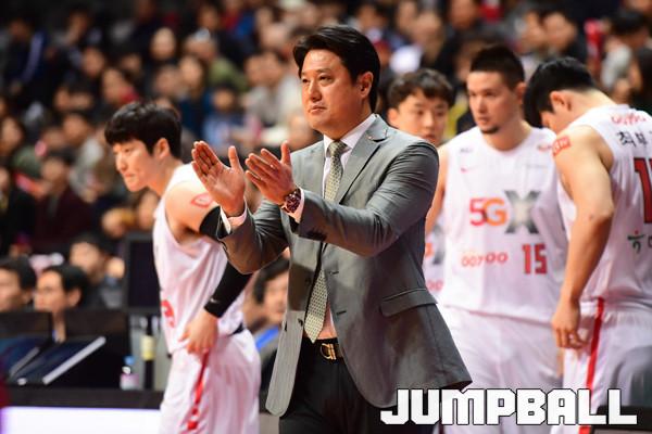 [점프볼=고양/박상혁 기자] 3일 고양체육관에서 2018-2019 SKT 5GX 프로농구 정규리그 고양 오리온과 서울 SK의 경기가 열렸다. SK 문경은 감독이 선수들을 독려하고 있다.