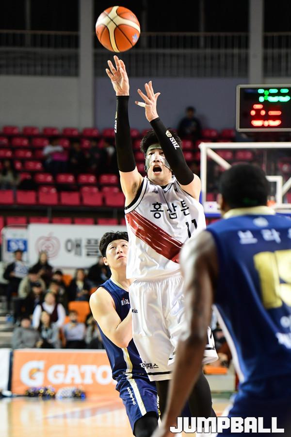 [점프볼=전주/박상혁 기자] 7일 전주실내체육관에서 2018-2019 SKT 5GX 프로농구 정규리그 전주 KCC와 안양 KGC인삼공사의 경기가 열렸다. KGC인삼공사 양희종이 시간에 쫓겨서 슛을 던지고 있다.