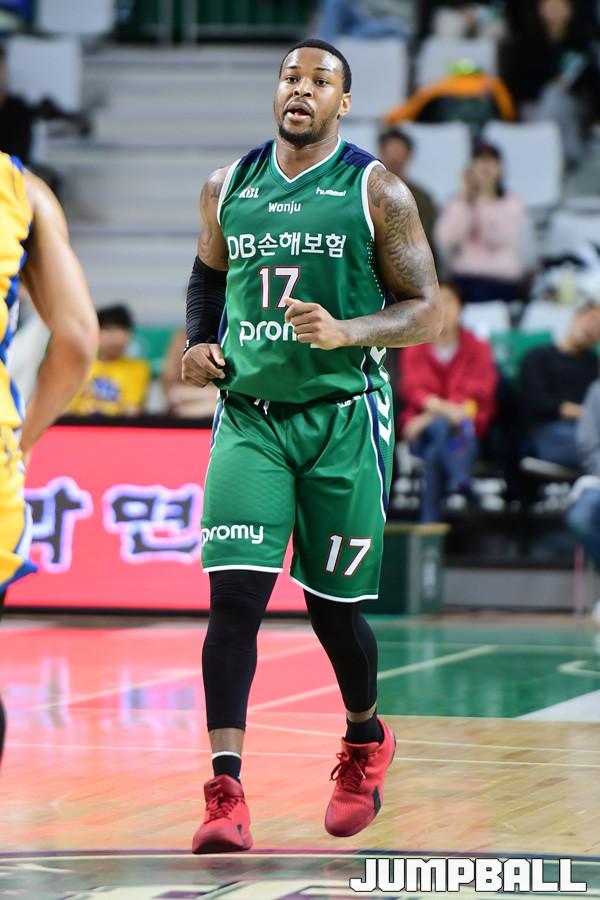 [점프볼=원주/박상혁 기자] 8일 원주종합체육관에서 2018-2019 SKT 5GX 프로농구 정규리그 원주 DB와 서울 삼성의 경기가 열렸다. DB 포스터가 슛을 성공시킨뒤 백코트를 하고 있다.