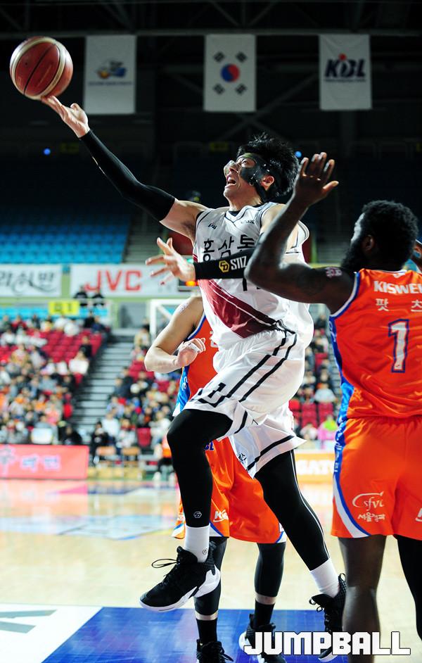 9일 인천삼산월드체육관에서 열린 '2018-2019 SKT 5GX 프로농구' 인천 전자랜드와 안양 KGC인삼공사 경기에서 KGC인삼공사 양희종이 레이업슛을 시도하고 있다.