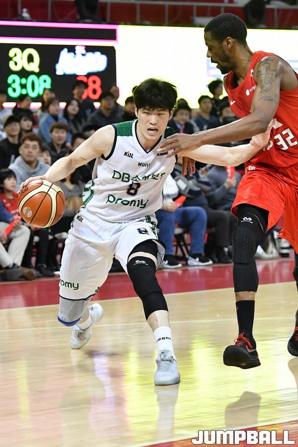 [점프볼=잠실학생체/홍기웅 기자] 10일 잠실학생체육관에서 열린 '2018-2019 SKT 5GX 프로농구' 서울 SK와 원주 DB의 경기. DB 박지훈이 드리블 도중 스텝백을 이용해 공간을 넓히고 있다.