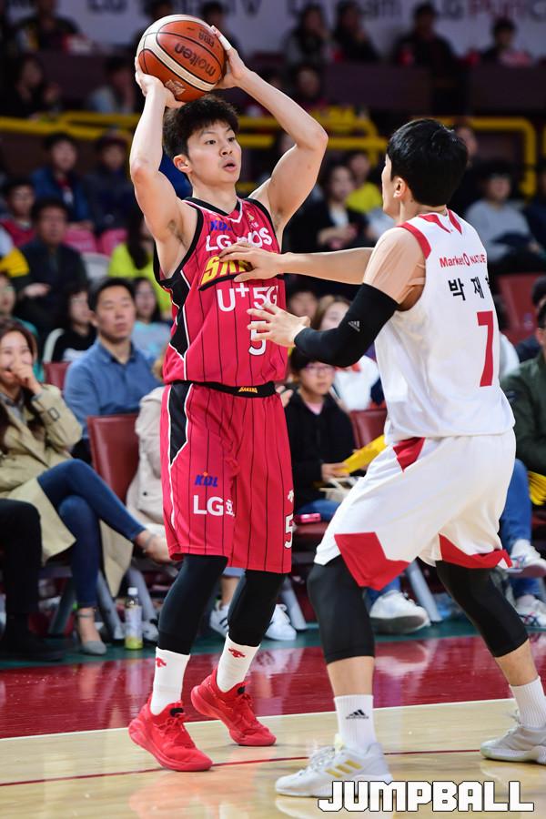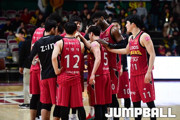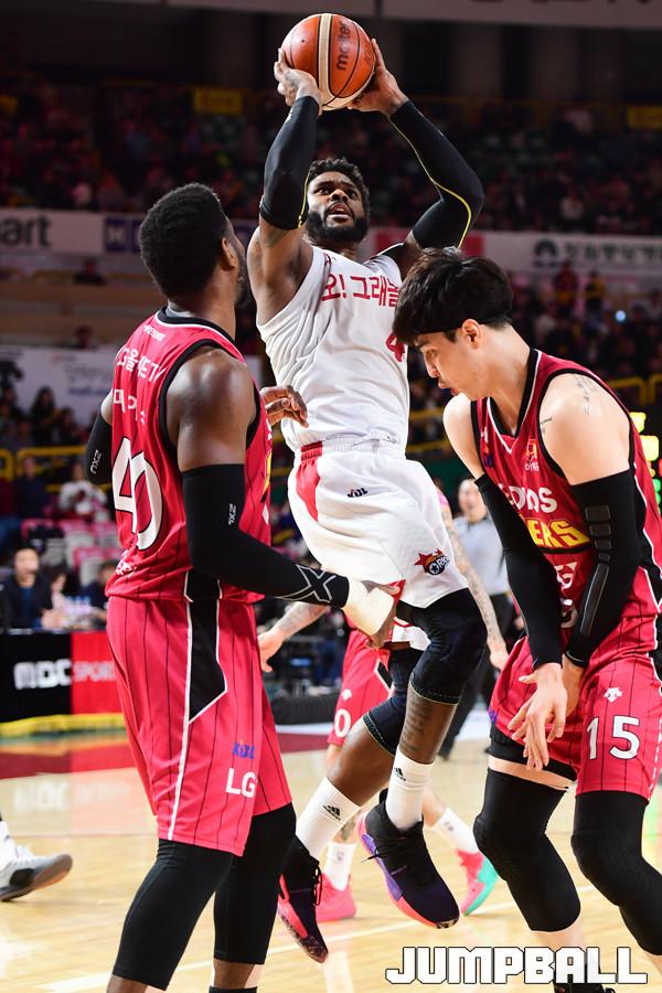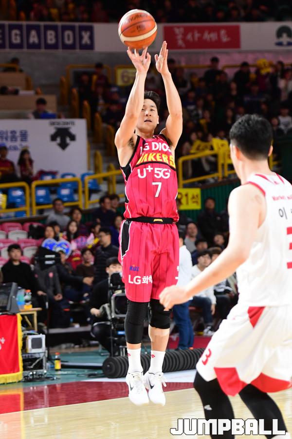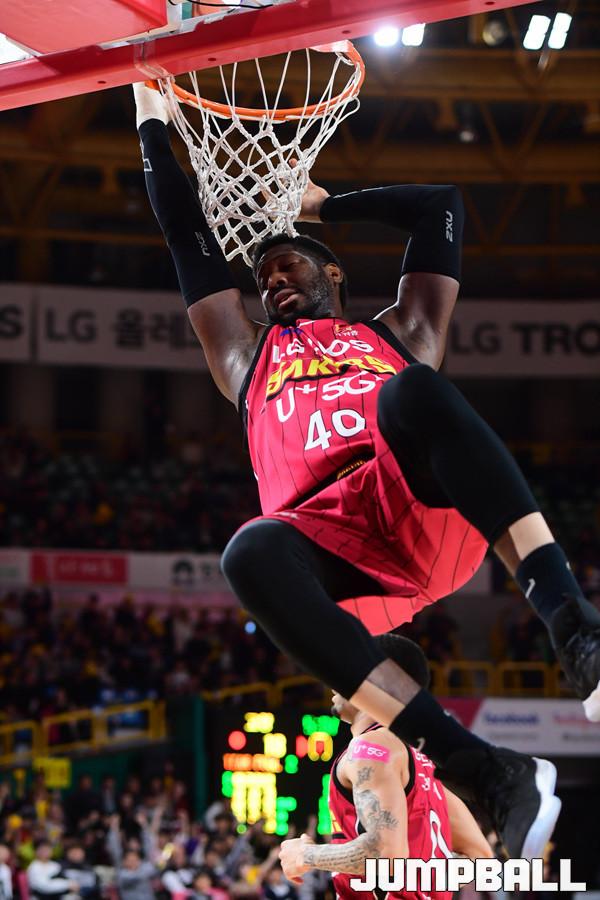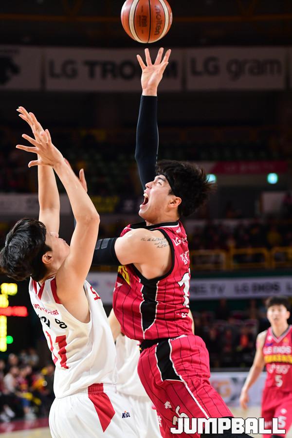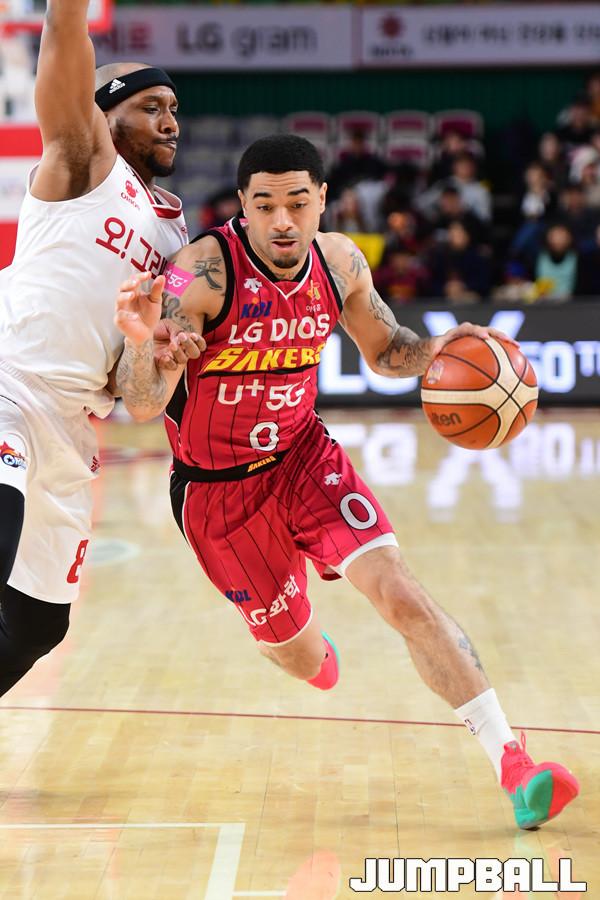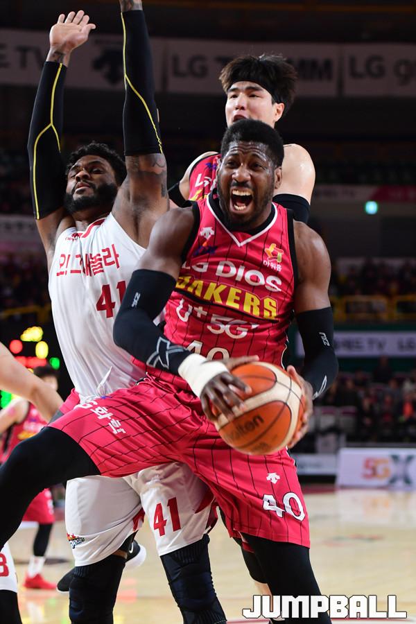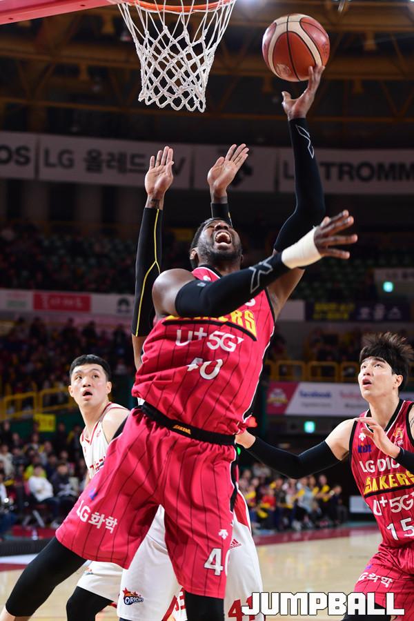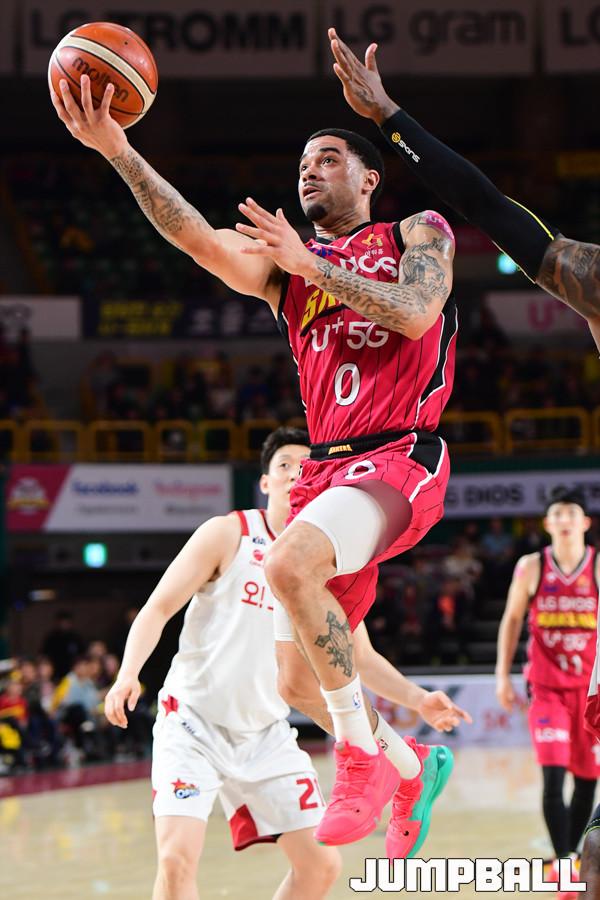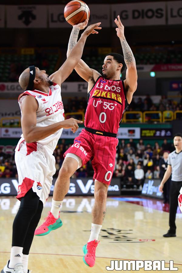 [점프볼=창원/박상혁 기자] 10일 창원실내체육관에서 2018-2019 SKT 5GX 프로농구 정규리그 창원 LG와 고양 오리온의 경기가 열렸다. 22번째 생일을 맞이한 LG가 오리온을 상대로 94대 71로 승리하였다. LG와 오리온 경기 화보.