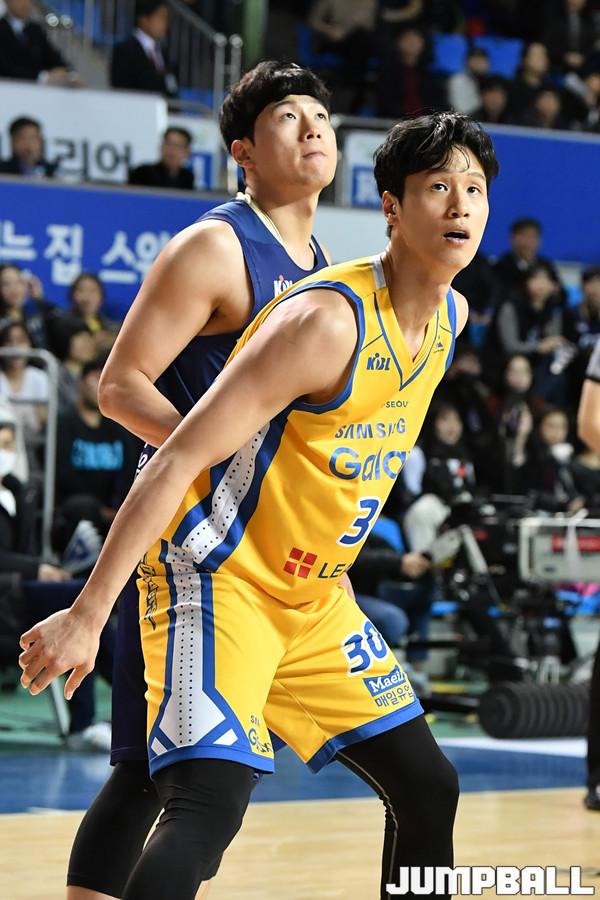 [점프볼=전주/홍기웅 기자] 13일 전주실내체육관에서 열린 '2018-2019 SKT 5GX 프로농구' 전주 KCC와 서울 삼성의 경기. 삼성 장민국이 박스아웃을 펼쳐 상대의 진로를 막고 있다.