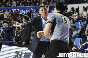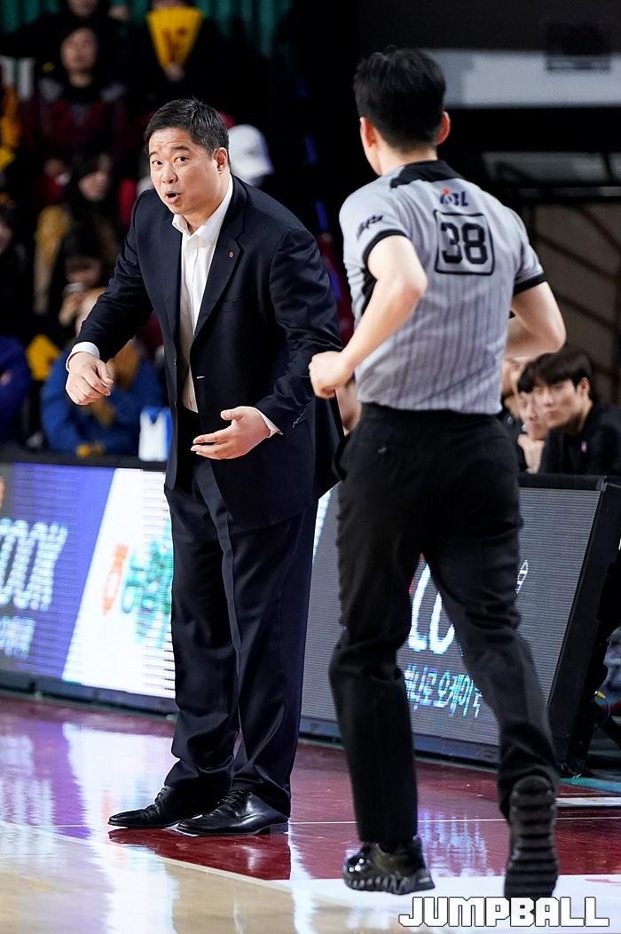 [점프볼=창원/유용우 기자] 13일 창원실내체육관에서 열린 '2018-2019 SKT 5GX 프로농구' 창원 LG와 부산 kt의 경기.LG 현주엽 감독이 파울을 어필하고 있다.