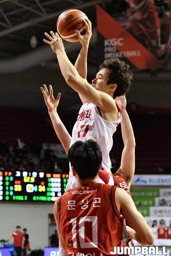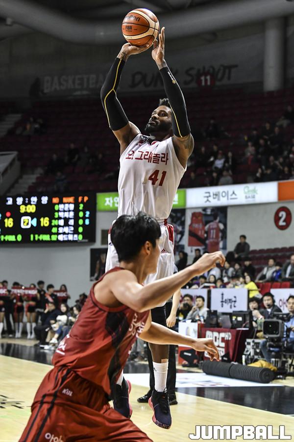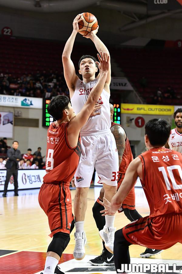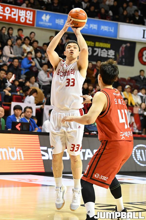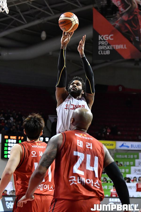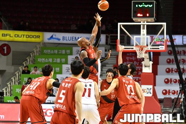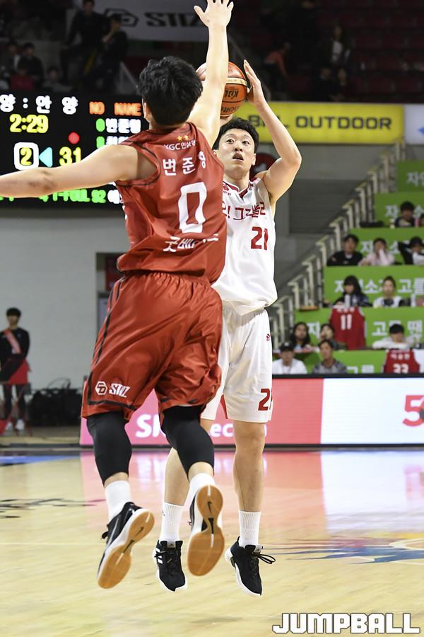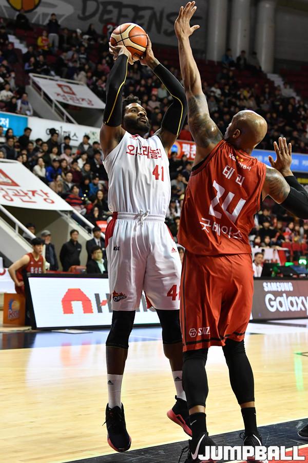 [점프볼=안양/홍기웅 기자] 16일 안양실내체육관에서 열린 '2018-2019 SKT 5GX 프로농구' 안양 KGC와 고양 오리온의 경기에서 4쿼터 양 팀의 접전끝에 오리온이 76-74로 2점차 승리를 거둬 플레이오프에 진출을 확정지었다. KGC와 오리온의 경기화보.