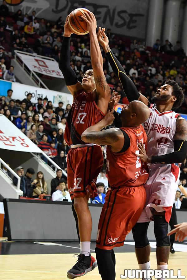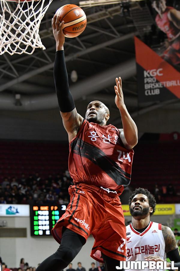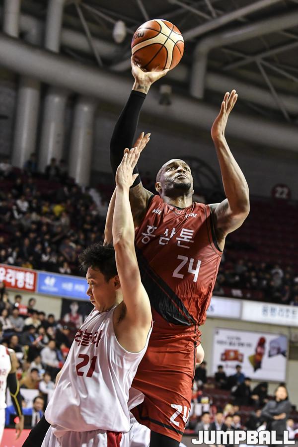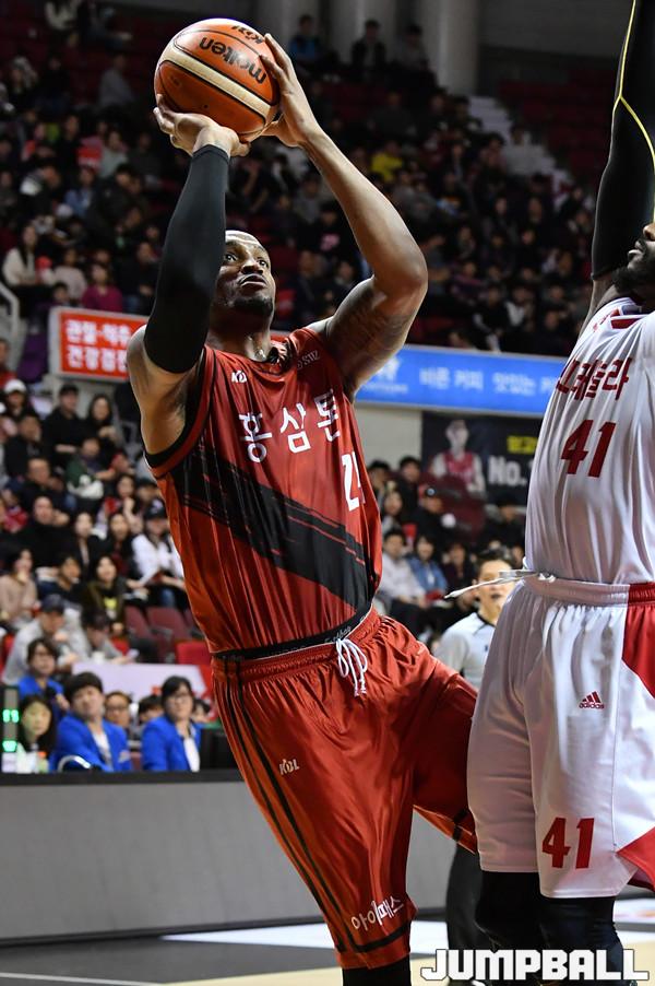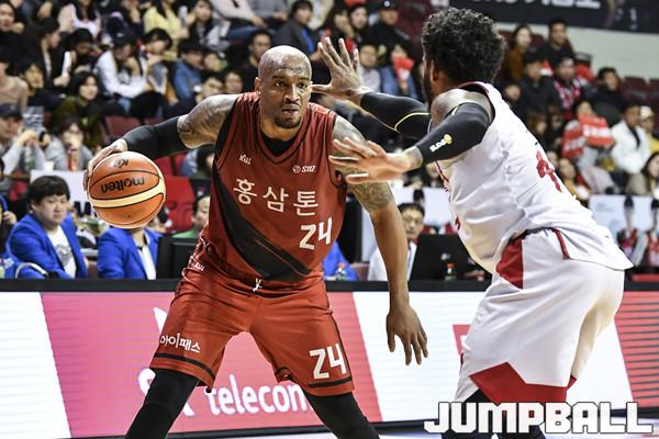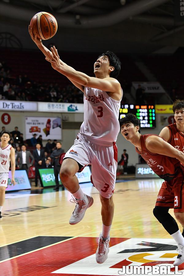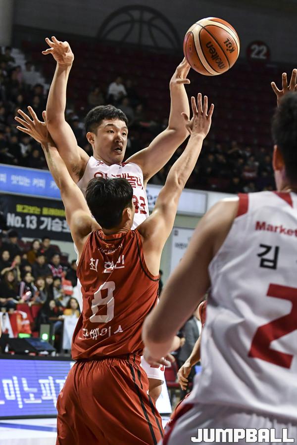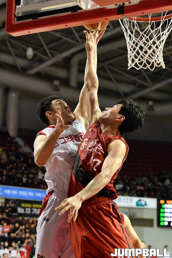 [점프볼=안양/홍기웅 기자] 16일 안양실내체육관에서 열린 '2018-2019 SKT 5GX 프로농구' 안양 KGC와 고양 오리온의 경기에서 4쿼터 양 팀의 접전끝에 오리온이 76-74로 2점차 승리를 거둬 플레이오프에 진출을 확정지었다. KGC와 오리온의 경기화보.