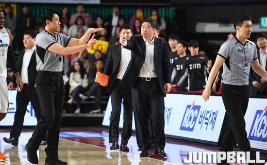 [점프볼=창원/문복주 기자] 16일 창원실내체육관에서 열린 '2018-2019 SKT 5GX 프로농구' 창원 LG와 인천 전자랜드의 경기, LG 현주엽 감독이 심판에 항의를 하고 있다.
