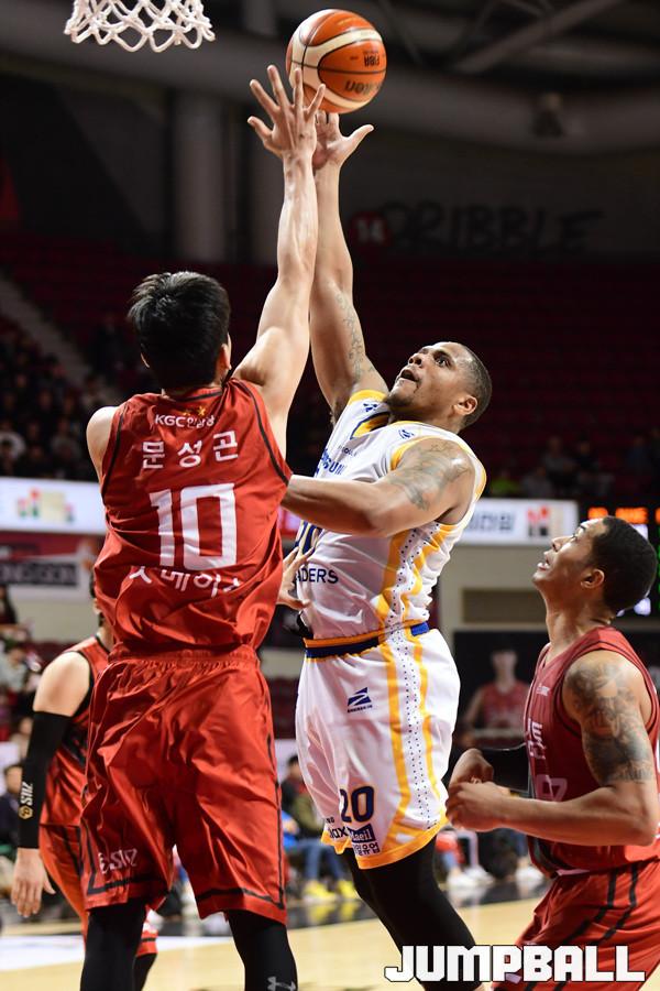 [점프볼=안양/박상혁 기자] 17일 안양실내체육관에서 2018-2019 SKT 5GX 프로농구 정규리그 안양 KGC인삼공사와 서울 삼성의 경기가 열렸다. 삼성 밀러가 훅슛을 던지고 있다.