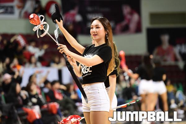 [점프볼=안양/박상혁 기자] 17일 안양실내체육관에서 2018-2019 SKT 5GX 프로농구 정규리그 안양 KGC인삼공사와 서울 삼성의 경기가 열렸다. 안양 KGC인삼공사 치어리더가 이벤트를 하고 있다.
