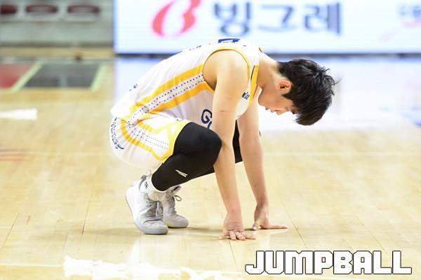 [점프볼=안양/박상혁 기자] 17일 안양실내체육관에서 2018-2019 SKT 5GX 프로농구 정규리그 안양 KGC인삼공사와 서울 삼성의 경기가 열렸다. 삼성 천기범이 1점차를 지고 있는 상황에서 공격이 실패로 끝나자 코트에 앉아서 아쉬워 하고 있다.
