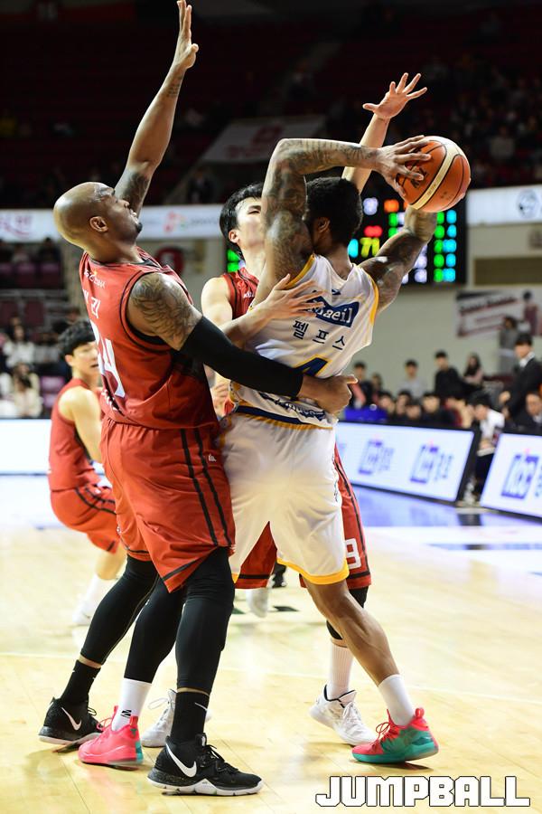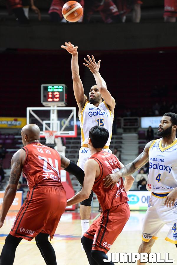[점프볼=안양/박상혁 기자] 17일 안양실내체육관에서 2018-2019 SKT 5GX 프로농구 정규리그 안양 KGC인삼공사와 서울 삼성의 경기가 열렸다. KGC인삼공사가 삼성을 맞아 89대 88로 승리하였다. 안양KGC인삼공사와 서울 삼성 경기 화보.