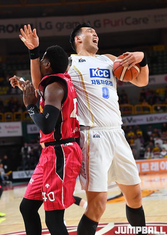 [점프볼=창원/문복주 기자] 17일 창원실내체육관에서 열린 '2018-2019 SKT 5GX 프로농구' 창원 LG와 전주 KCC의 경기, KCC 하승진이 골밑에서 수비리바운드를 잡아내고 있다.
