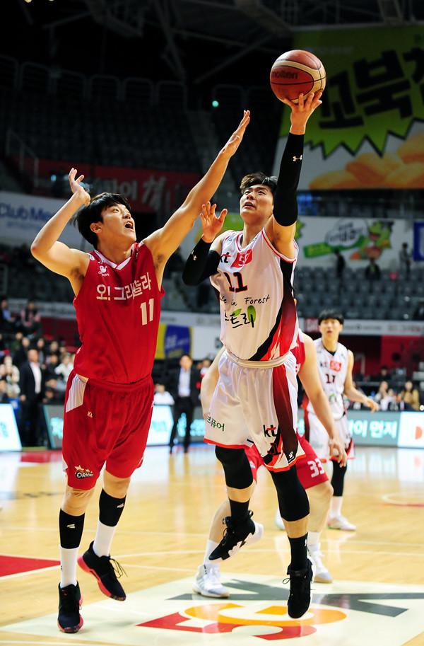 19일 고양실내체육관에서 열린 '2018-2019 SKT 5GX 프로농구' 고양 오리온과 부산 KT 경기에서 KT 양홍석이 레이업슛을 시도하고 있다.