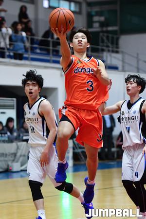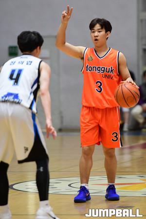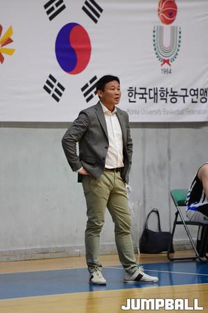 [점프볼=필동/박상혁 기자] 20일 동국대 체육관에서 2019 KUSF 대학농구 U-리그 동국대와 명지대의 경기가 열렸다. 명지대 이병석 코치가 선수들에게 박수를 보내고 있다.