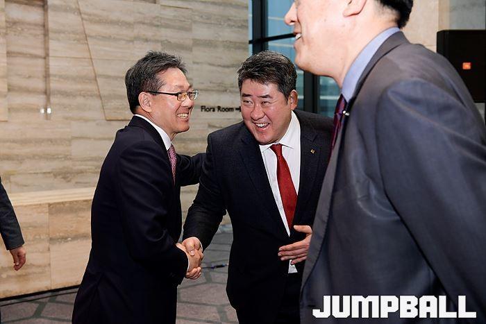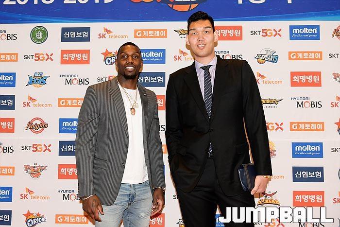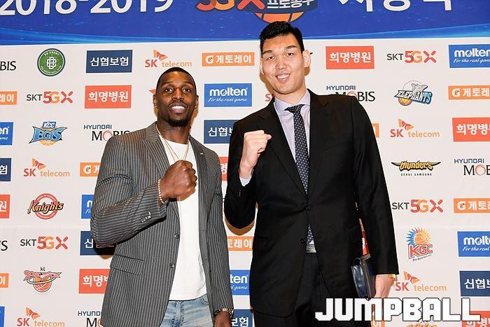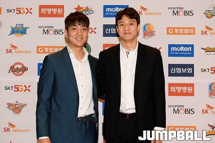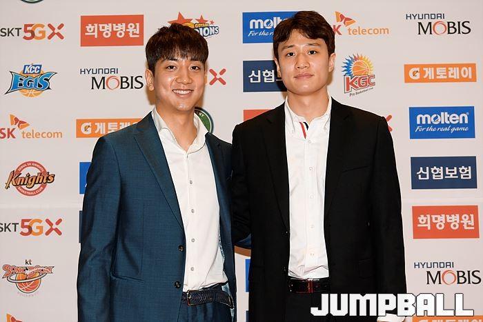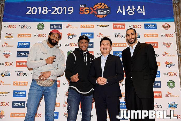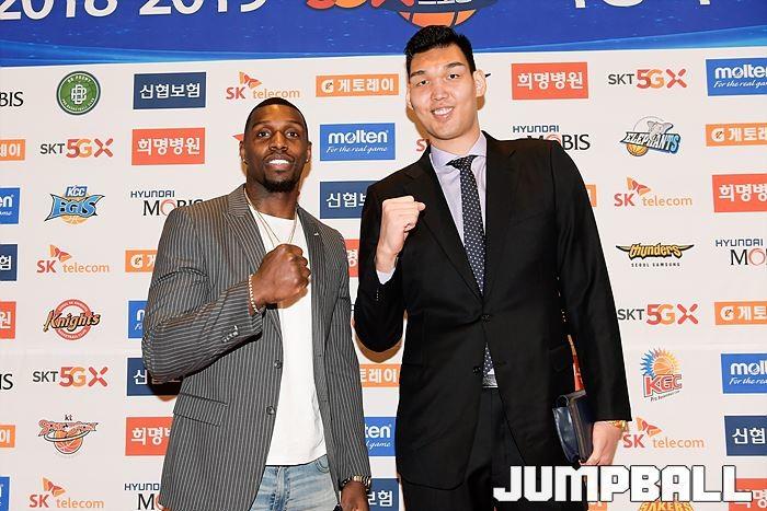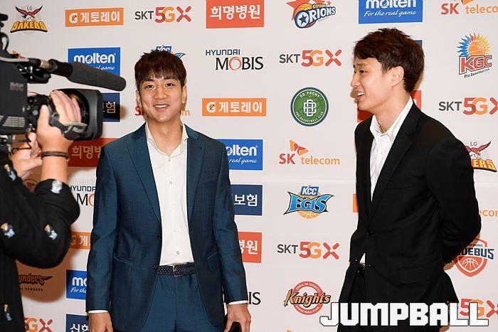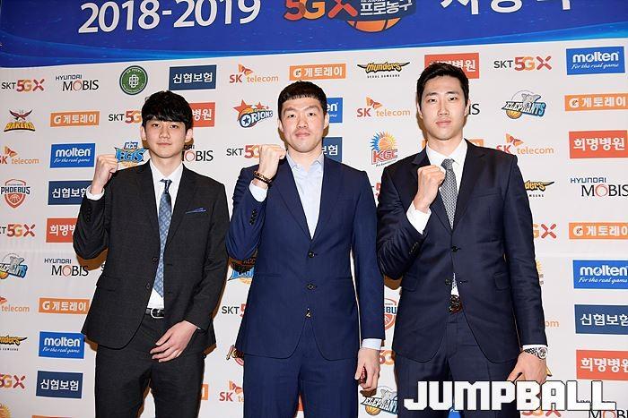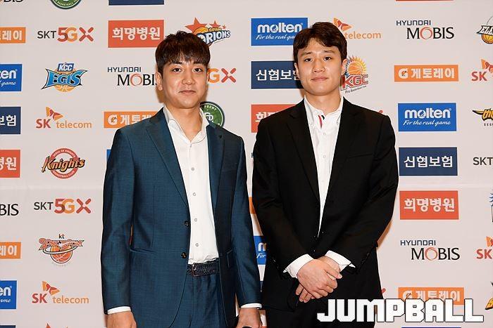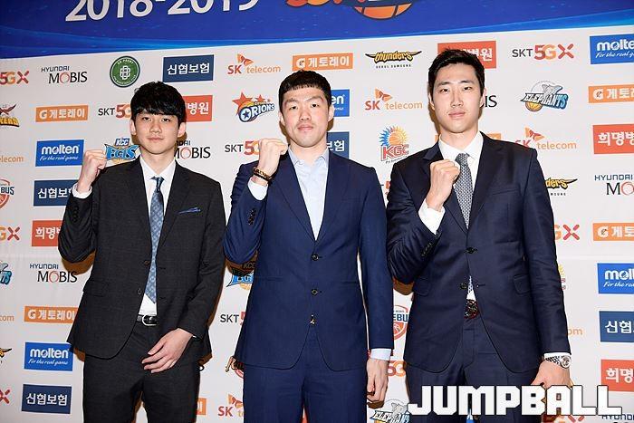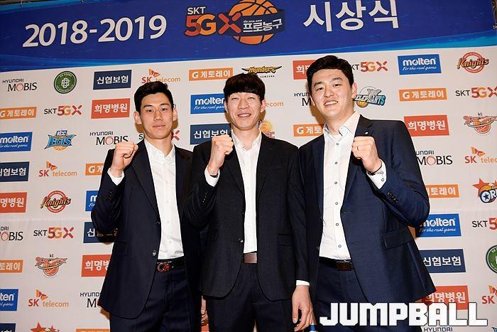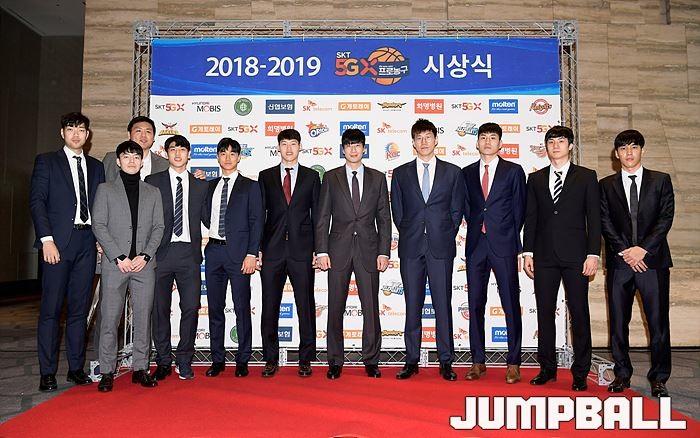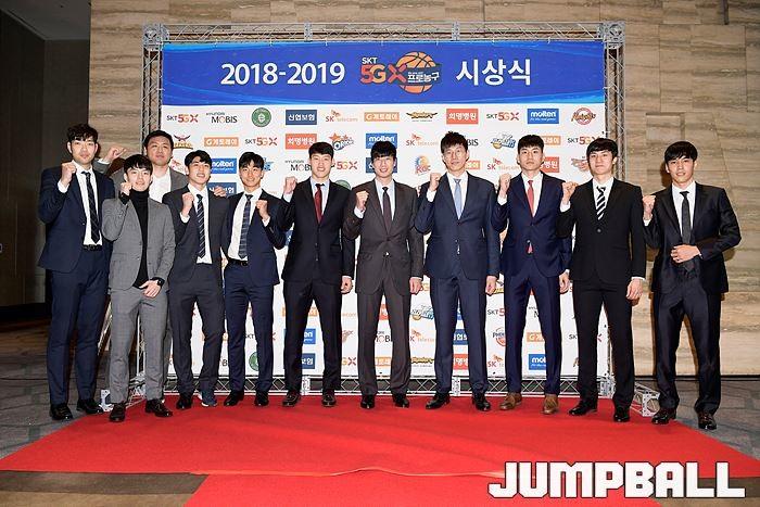 [점프볼=삼성동/유용우 기자] 20일 삼성동 그랜드 인터컨티넨탈 서울 파르나스 그랜드볼룸에서 열린 2018-19 SKT 5GX 프로농구 시상식. 시상식에 참가 선수들이 포토라인에 들어서며 포즈를 취하고 있다.