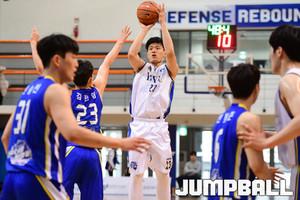 [점프볼=신촌/박상혁 기자] 21일 연세대 신촌캠퍼스 체육관에서 2019 KUSF 대학농구 U-리그 연세대와 한양대의 경기가 열렸다. 연세대 양재혁이 3점슛을 시도하려 하고있다.