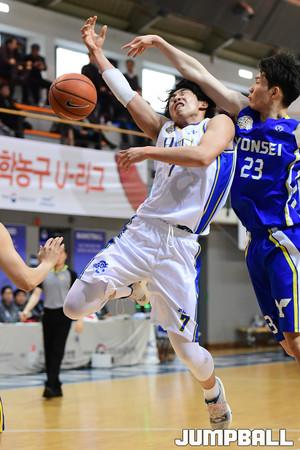 [점프볼=신촌/박상혁 기자] 21일 연세대 신촌캠퍼스 체육관에서 2019 KUSF 대학농구 U-리그 연세대와 한양대의 경기가 열렸다. 연세대가 한양대를 맞아 102대 74로 승리하였다. 연세대와 한양대 경기 화보.