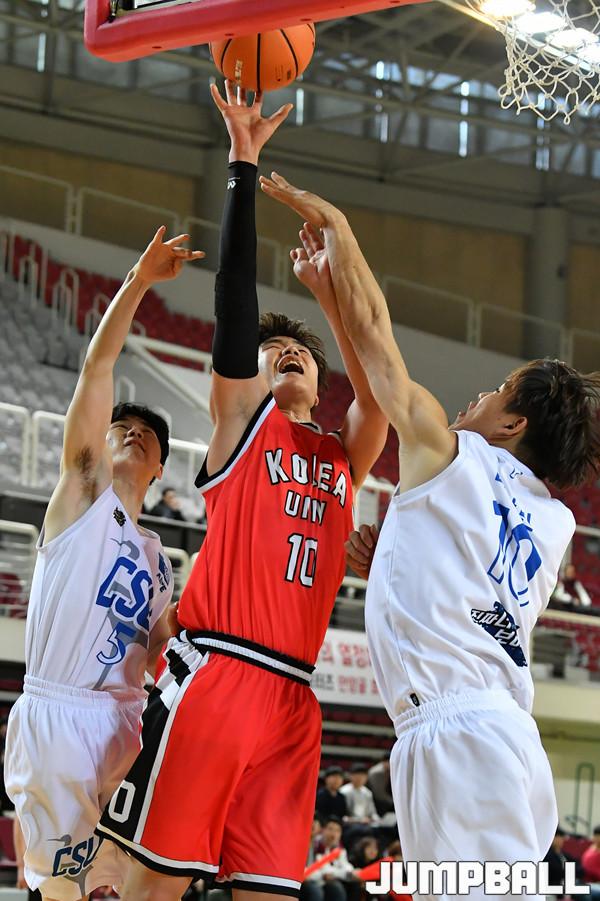 [점프볼=안암/홍기웅 기자] 22일 고려대학교 화정체육관에서 열린 '2019 KUSF 대학농구 U-리그' 고려대와 조선대의 경기. 고려대 박민우가 골밑슛을 올리고 있다.