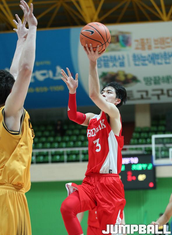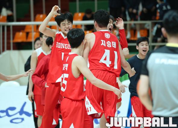 홍대부고는 22일 전남 해남우슬체육관에서 열린 제56회 춘계전국남녀중고농구 연맹전 남고부 결승전에서 에이스 박무빈(187cm, G)을 중심으로 집중력을 발휘해 예선전에 이어 84-71로 또다시 안양고를 꺾고 우승의 기쁨을 누렸다.