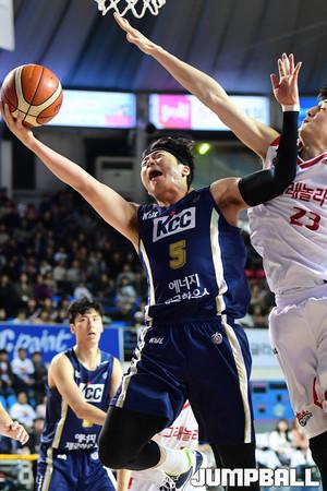 [점프볼=전주/박상혁 기자] 23일 전주실내체육관에서 2018-2019 SKT 5GX 프로농구 6강 플레이오프 전주 KCC와 고양 오리온의 1차전 경기가 열렸다. KCC 킨이 속공상황에서 골밑슛을 올리고 있다.