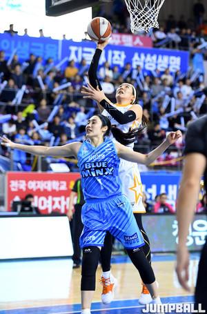 [점프볼=용인/문복주 기자] 25일 용인실내체육관에서 열린 ‘우리은행 2018~2019 여자프로농구’ 챔피언결정전 3차전을 용인 삼성생명과 청주 KB스타즈의 경기. KB스타즈 염윤아가 순간 돌파를 시도하고 있다.