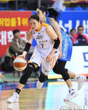 [점프볼=용인/문복주 기자] 25일 용인실내체육관에서 열린 ‘우리은행 2018~2019 여자프로농구’ 챔피언결정전 3차전을 용인 삼성생명과 청주 KB스타즈의 경기. 삼성생명 하킨스가 김한별의 굿어시스트를 받아서 슛을 득점하고 있다.