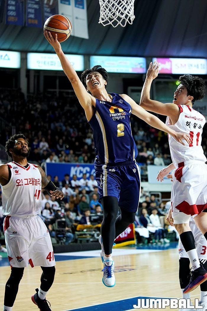 [점프볼=전주/유용우 기자] 25일 전주실내체육관에서 열린 '2018-2019 SKT 5GX 프로농구' 전주 KCC와 고양 오리온의 6강 플레오프 2차전 경기, KCC 송교창이 레이업을 올리고 있다.