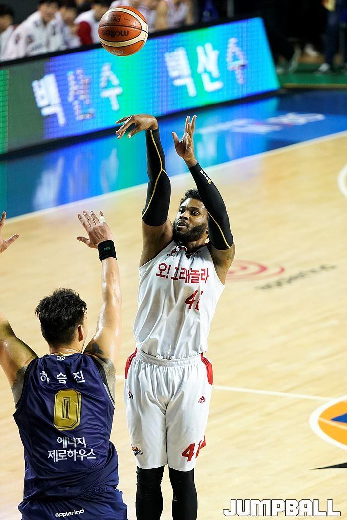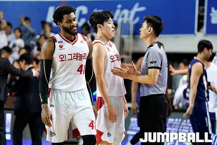 [점프볼=전주/유용우 기자] 25일 전주실내체육관에서 열린 '2018-2019 SKT 5GX 프로농구' 전주 KCC와 고양 오리온의 6강 플레오프 2차전 경기, 오리온이 97-86으로 승리하며 승부를 원점으로 만들었다.