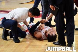[JB포토] 부상으로 코트 바닥에 쓰러져 있는 김시래