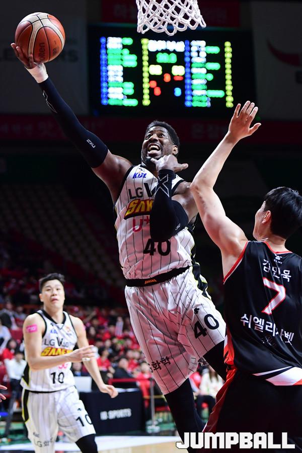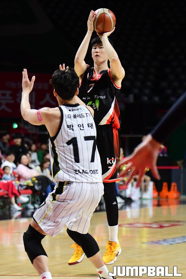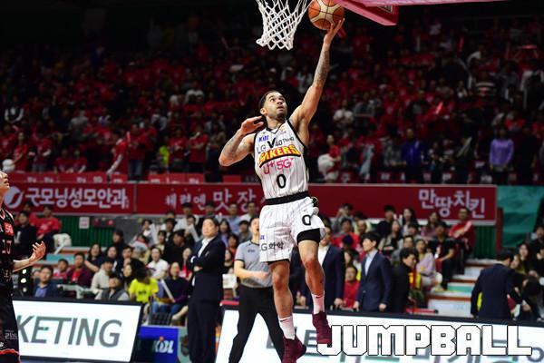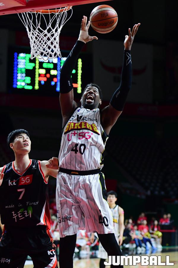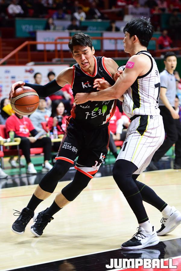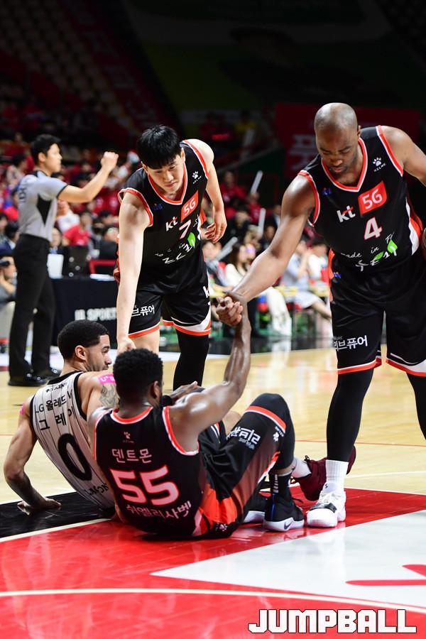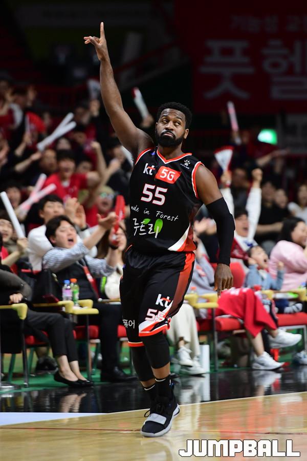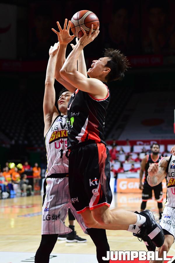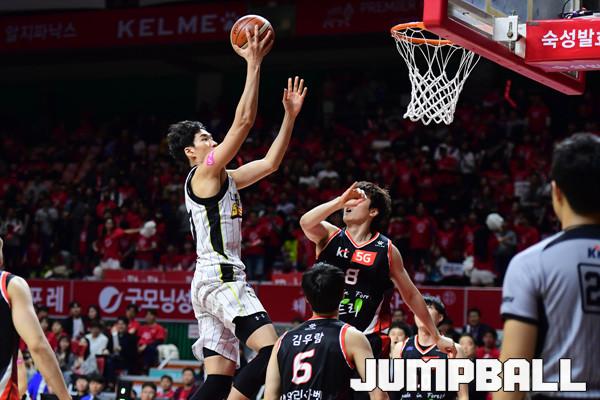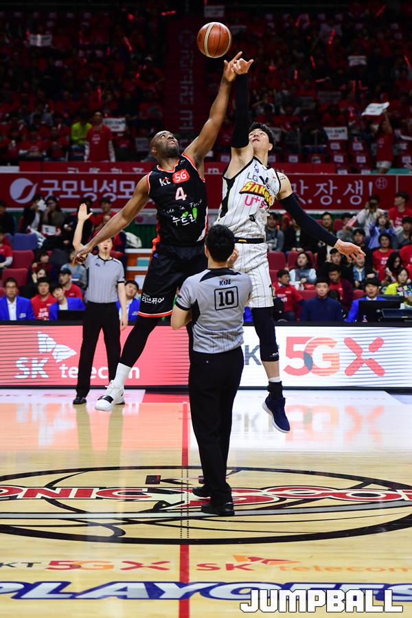 [점프볼=부산/박상혁 기자] 28일 부산사직체육관에서 2018-2019 SKT 5GX 프로농구 부산 KT와 창원 LG의 6강 플레이오프 3차전 경기가 열렸다. KT가 홈에서 양궁농구의 화력을 과시하며 LG에 103대 83으로 승리하였다. 이로써 양팀은 이틀뒤인 30일에 4차전을 갖게 되었다. KT와 LG 플레이오프 3차전 경기 화보.