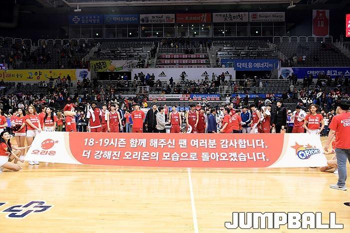 [점프볼=고양/유용우 기자] 29일 고양 실내체육관에서 열린 '2018-2019 SKT 5GX 프로농구' 고양 오리온과 전주 KCC의 6강 플레오프 4차전, KCC가 100-92로 승리하며 4강 플레이오프에 진출하였다.