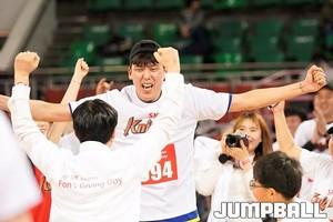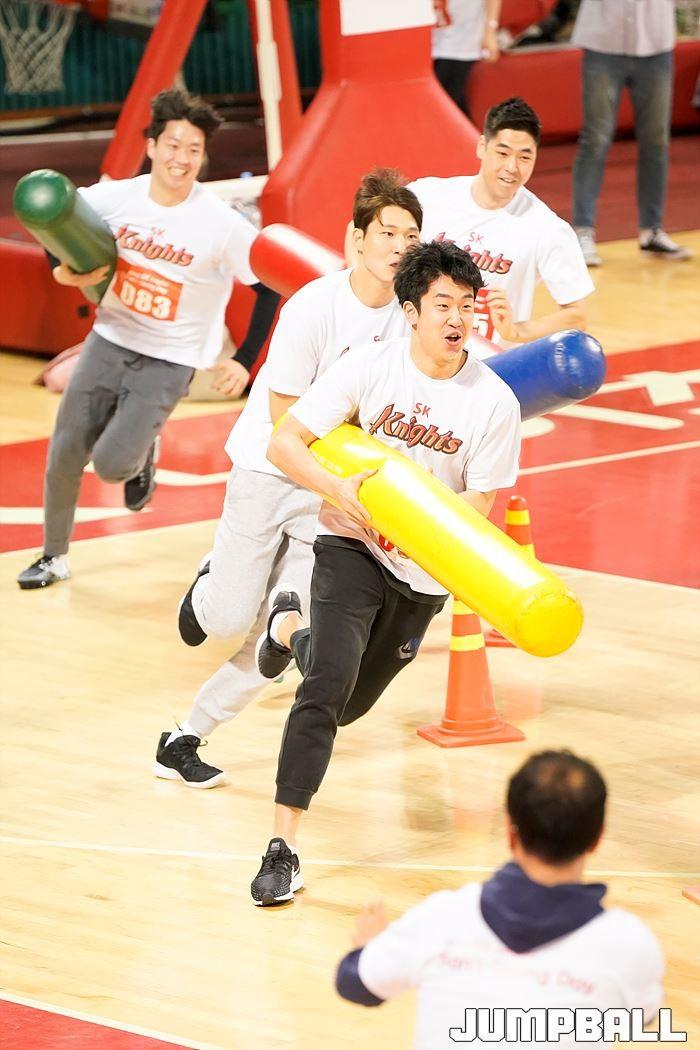 [점프볼=잠실/유용우 기자] SK 나이츠 농구단은 30일 잠실 학생체육관에서 18-19 시즌동안 SK를 응원해준 팬들을 위한 '2019 SK 나이츠 팬스 기빙데이' 팬행사를 마련했다. SK 이현석이 릴레이 계주를 팬들과 하고 있다.
